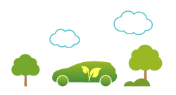 に配慮した車両ラインナップ、マイカーからカーシェアリングでCO2を削減します。
